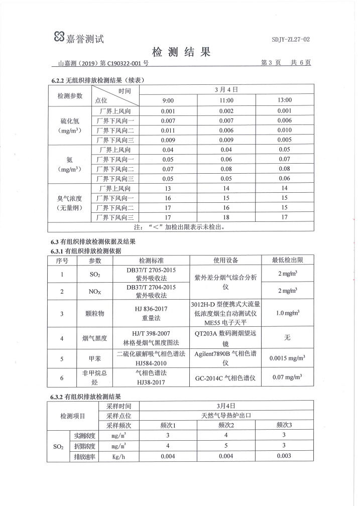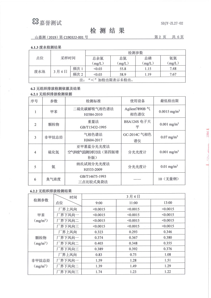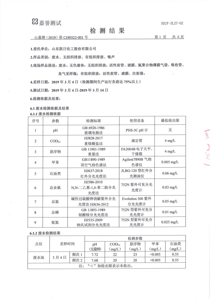 - 山東凱日化工股份有限公司環(huán)境檢測報告 2019-05-15